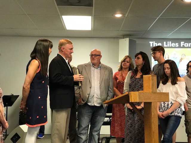 - The entire congregation stood to demonstrate their support and commitment to praying for and serving the Liles family.