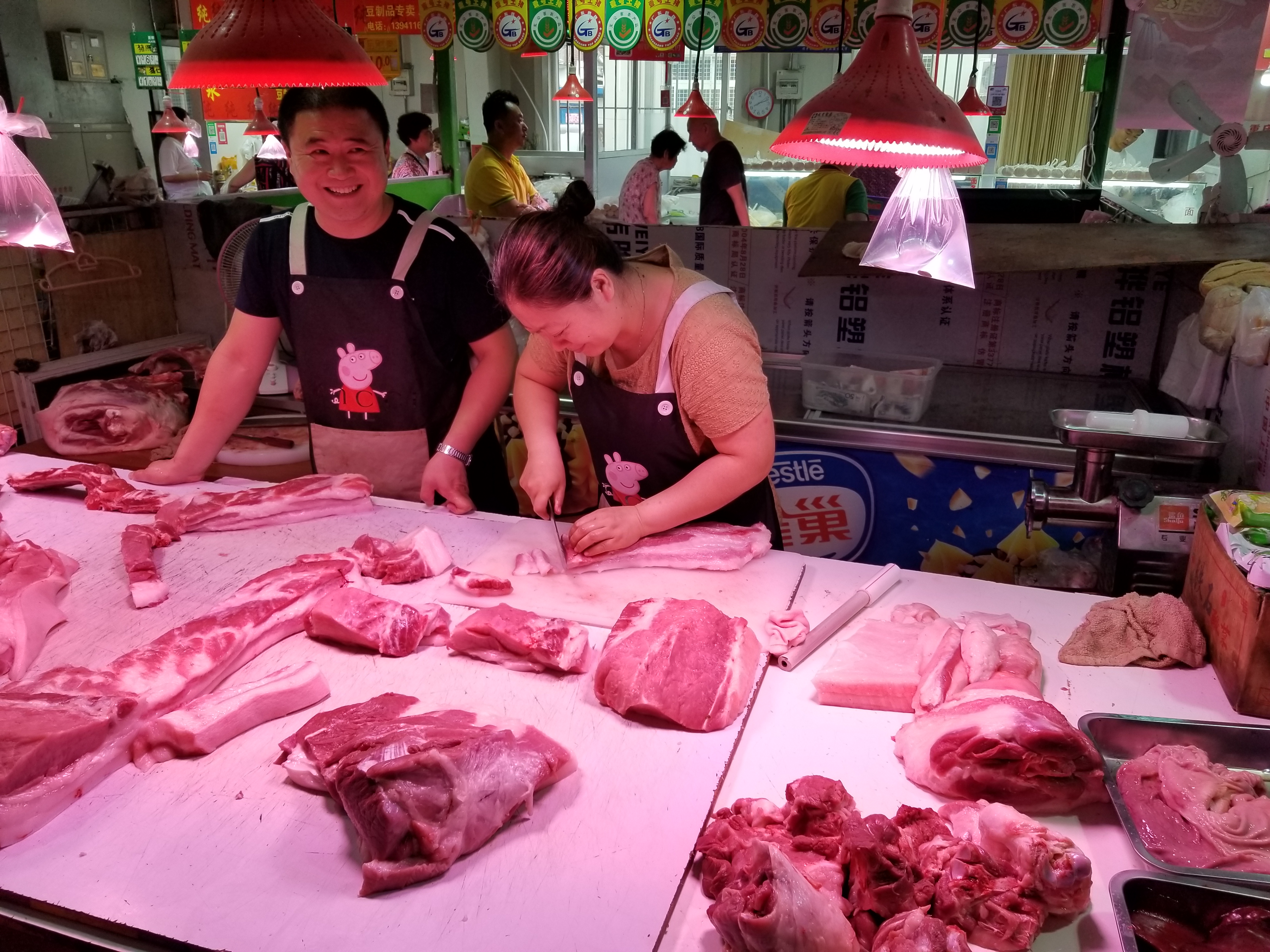 As we hit the market, the students were impressed with the amount of work it takes to put this on every day. These people get here at the break of day to get things set up and started. The meat is the freshest in the morning – which is important. For our breakfast meal we chose to purchase fresh pork for our evening bacon – right off the freshly butchered pig. In addition we purchased eggs, fruit of various kinds, and other ingredients.