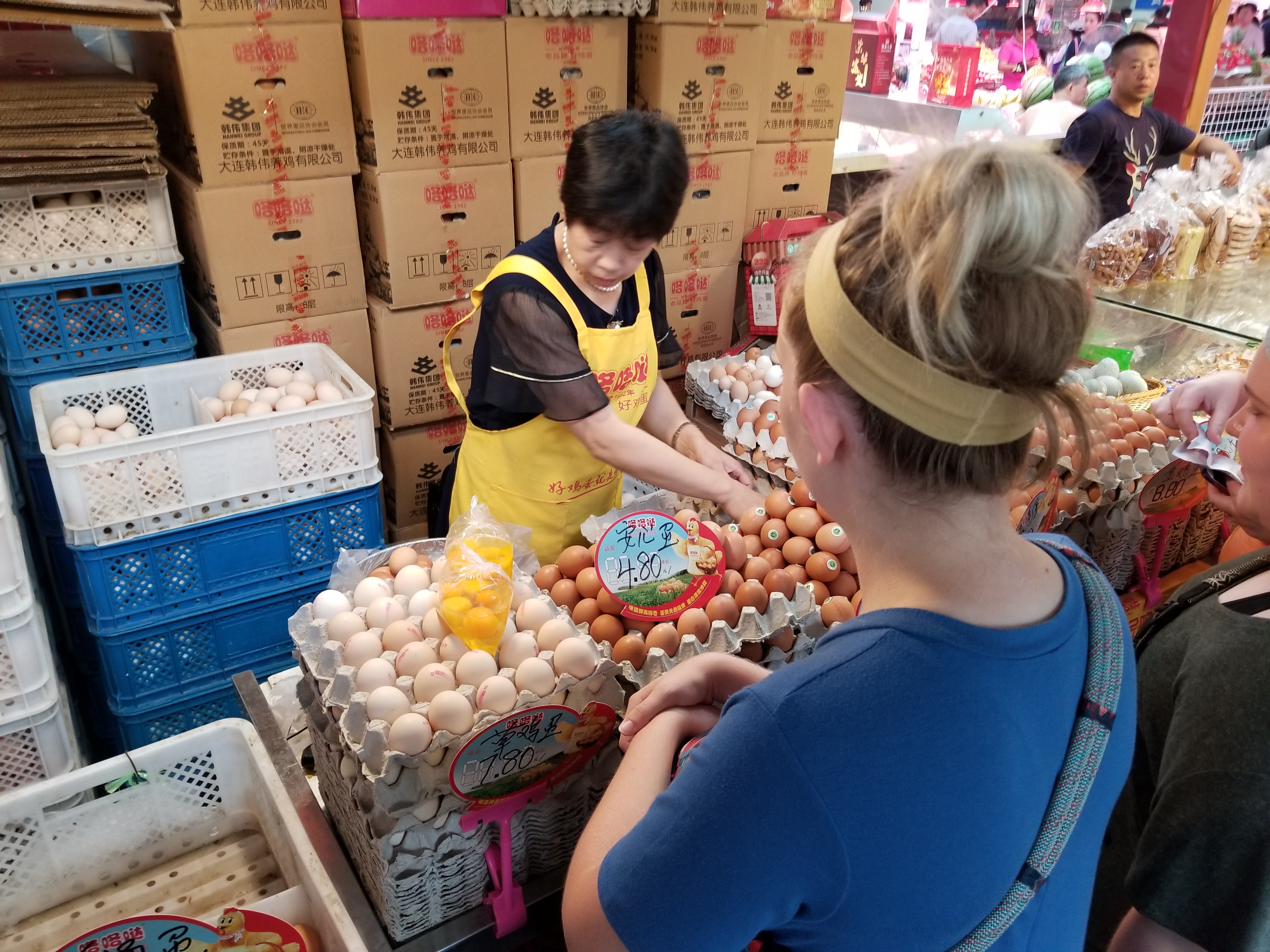 Tonight’s meal was a simple breakfast-for-supper menu. The students were responsible to shop, prepare, and cook the meal. Because they are non-Asian students, we recognized early in the menu planning that a traditional meal would be a challenge. So we chose to go simple. But the students quickly learned that simple is not simple in this culture.
