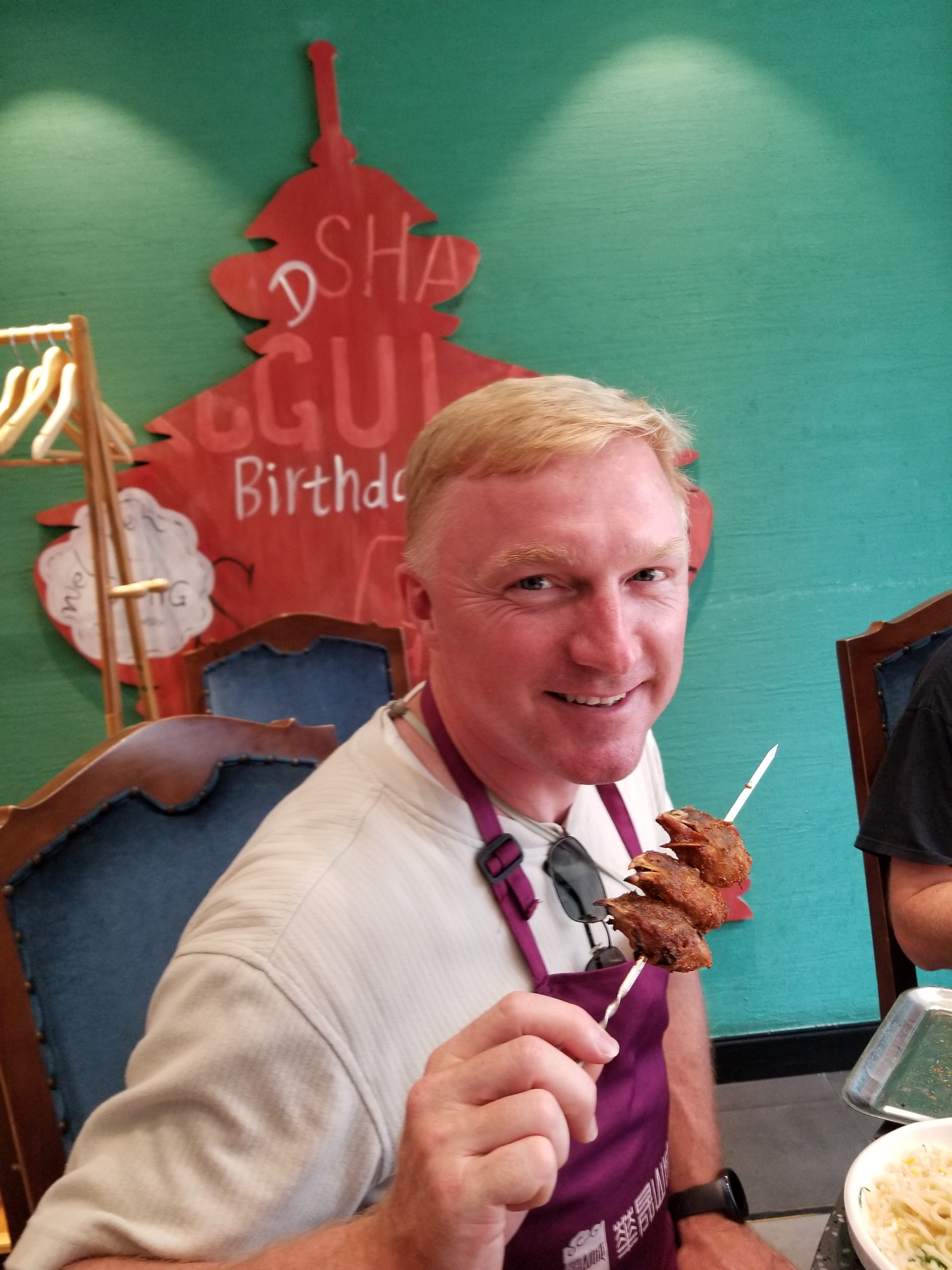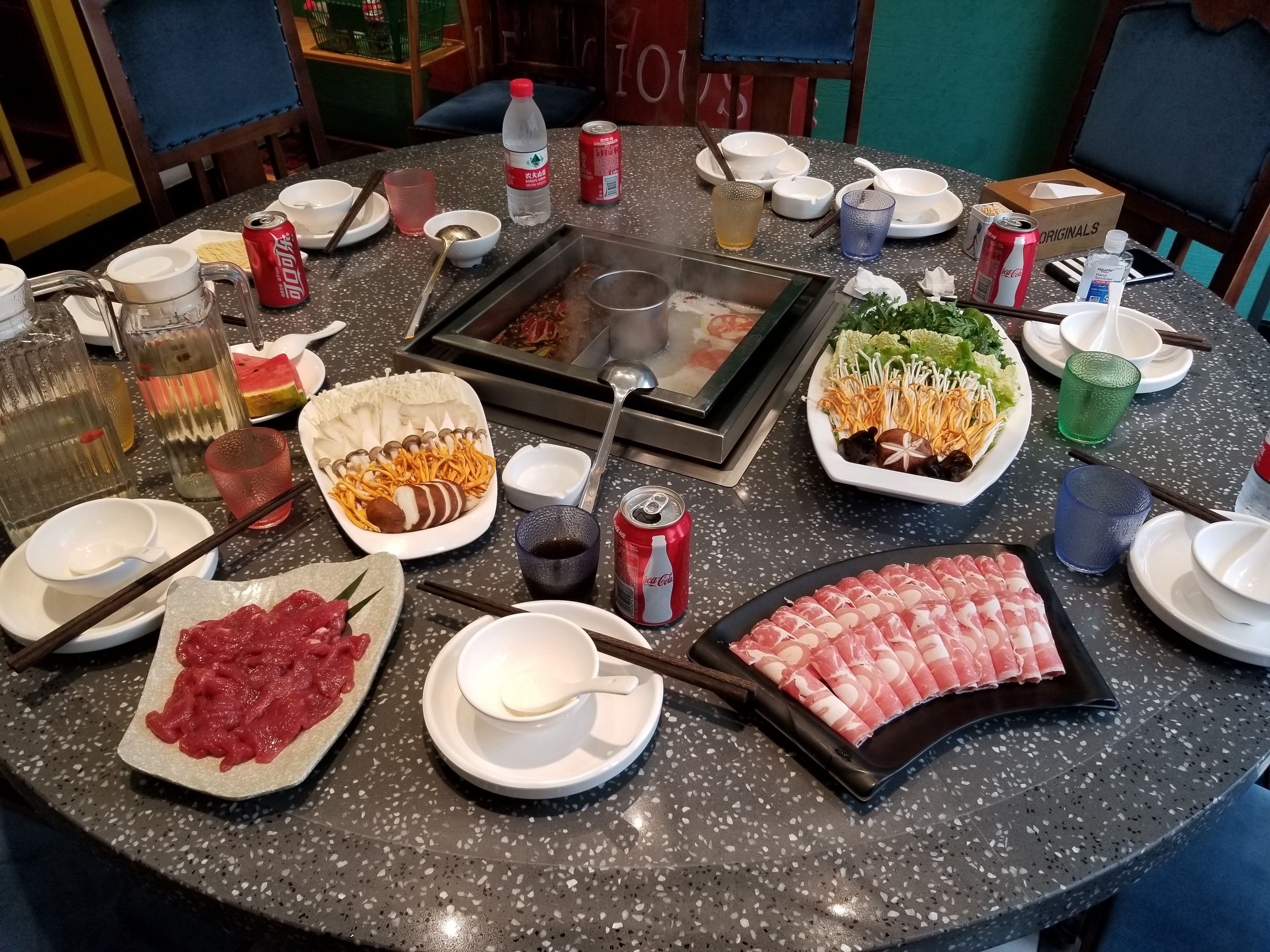 With everything purchased, we went out to eat for lunch. We actually went to a restaurant with a hot pot. We enjoyed cooking various styles of beef and mutton. Plus, we enjoyed some shrimp, chicken heads, various vegetables, and creating our own spice combinations. The meal provided a fun break to a busy week of activities.