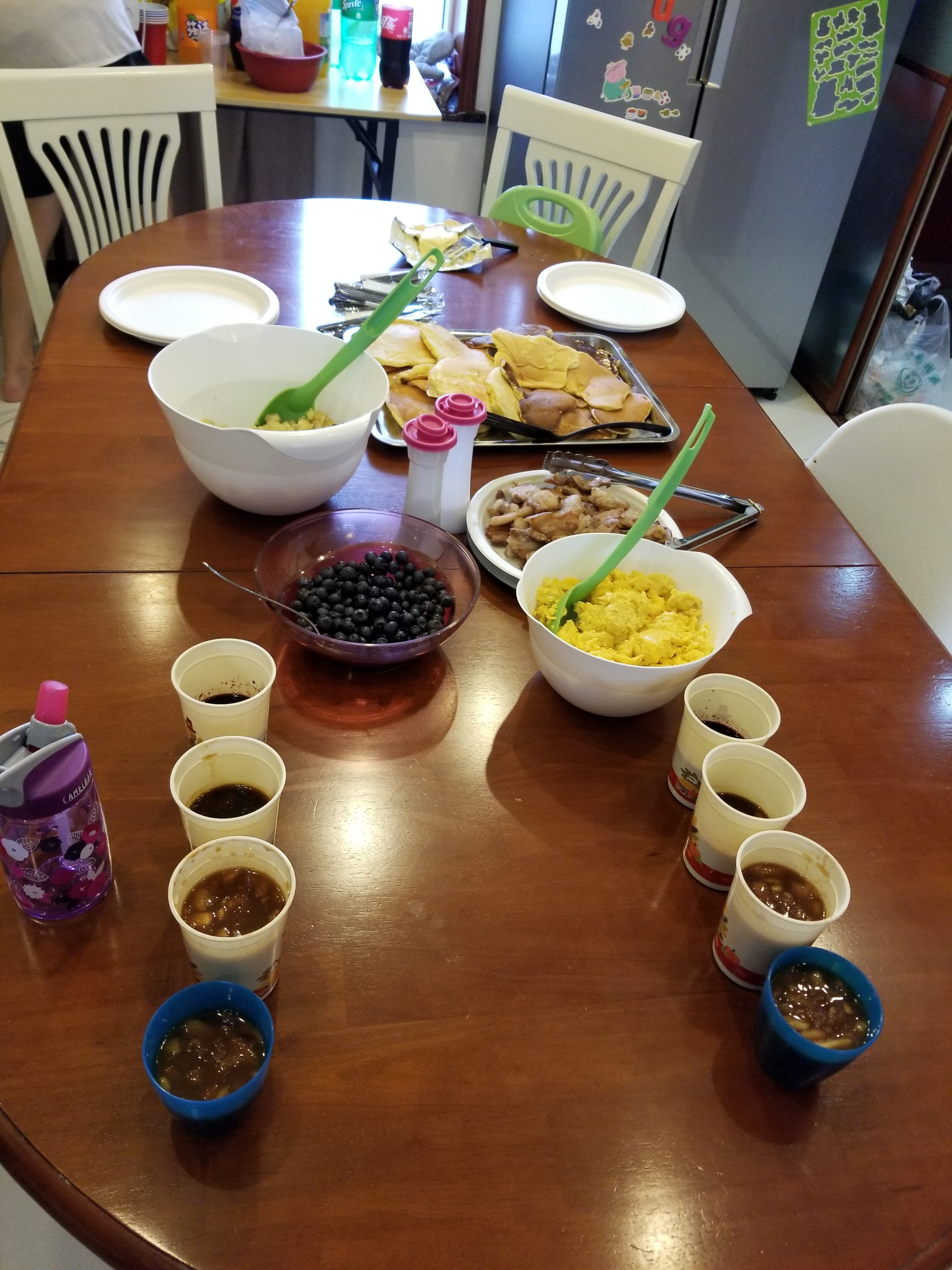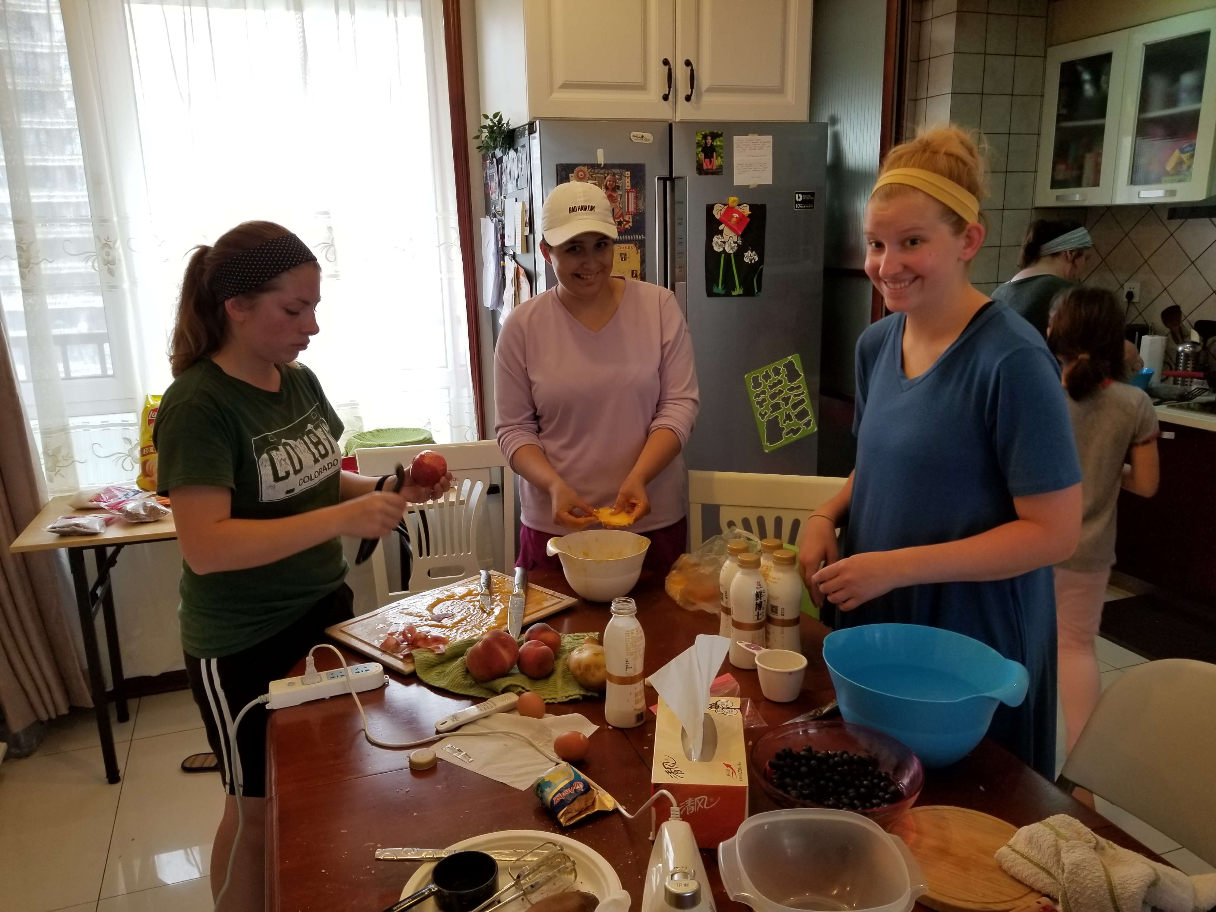 Regarding supper – the finished product was a blast. We all had fun together as we prepped, cooked, and then ate. I think the students learned how hard it is to feed a family in Asia. Great lessons learned while having fun in the process. It actually tasted incredible. The homemade syrups of peach, blueberry, and mango were tasty. The homemade rolls by the guys were top notch! They had to substitute multiple ingredients and it worked!