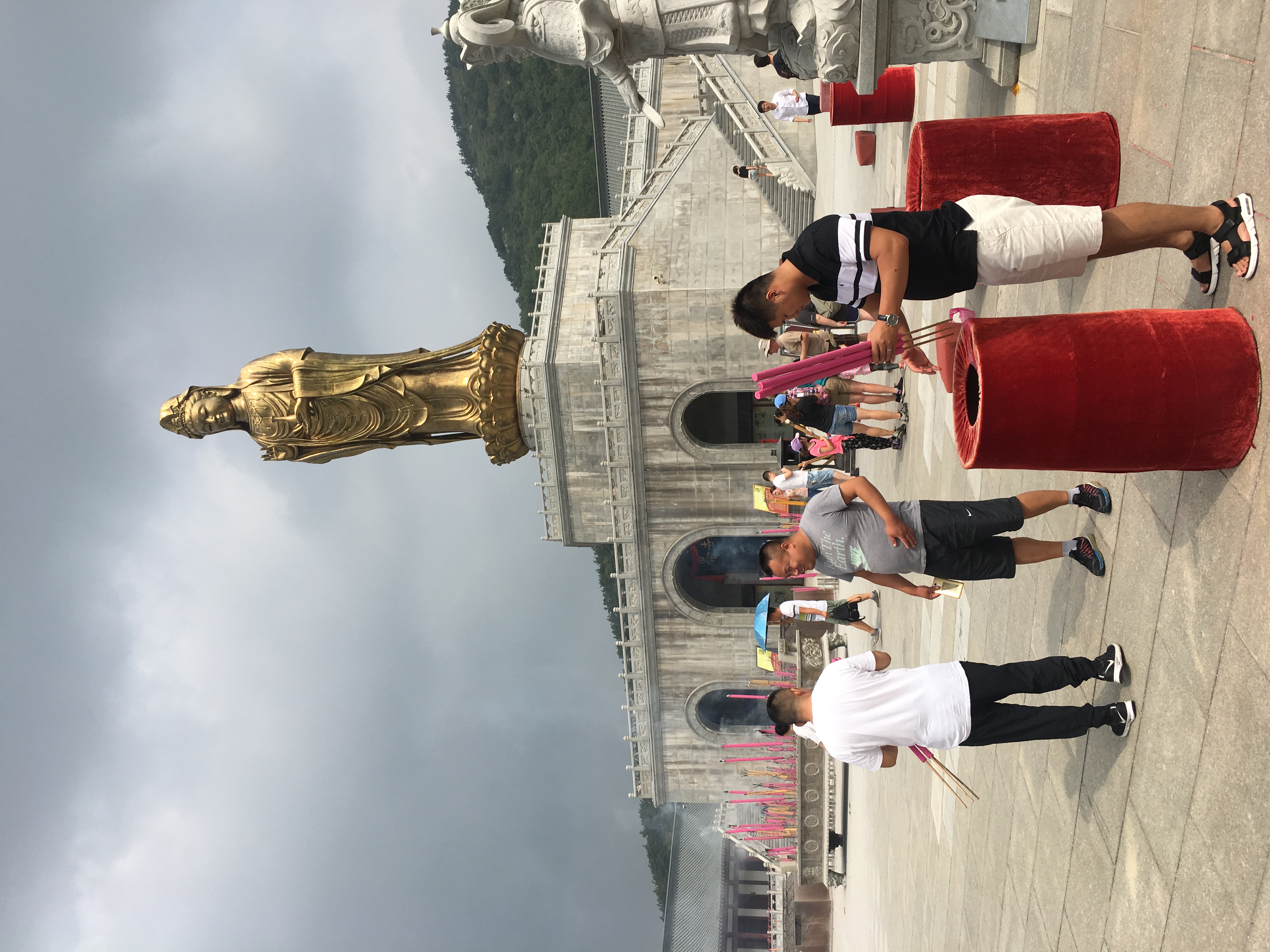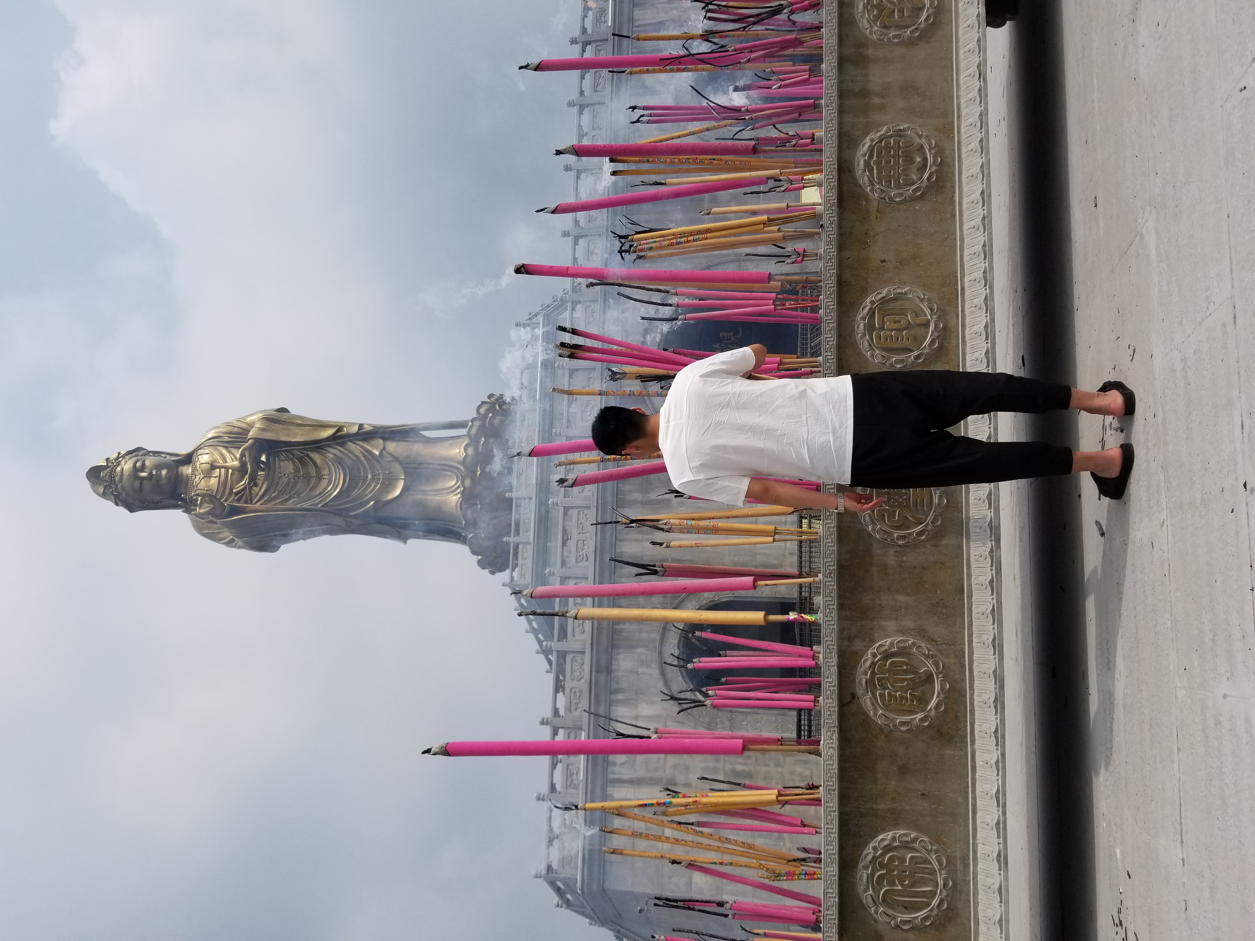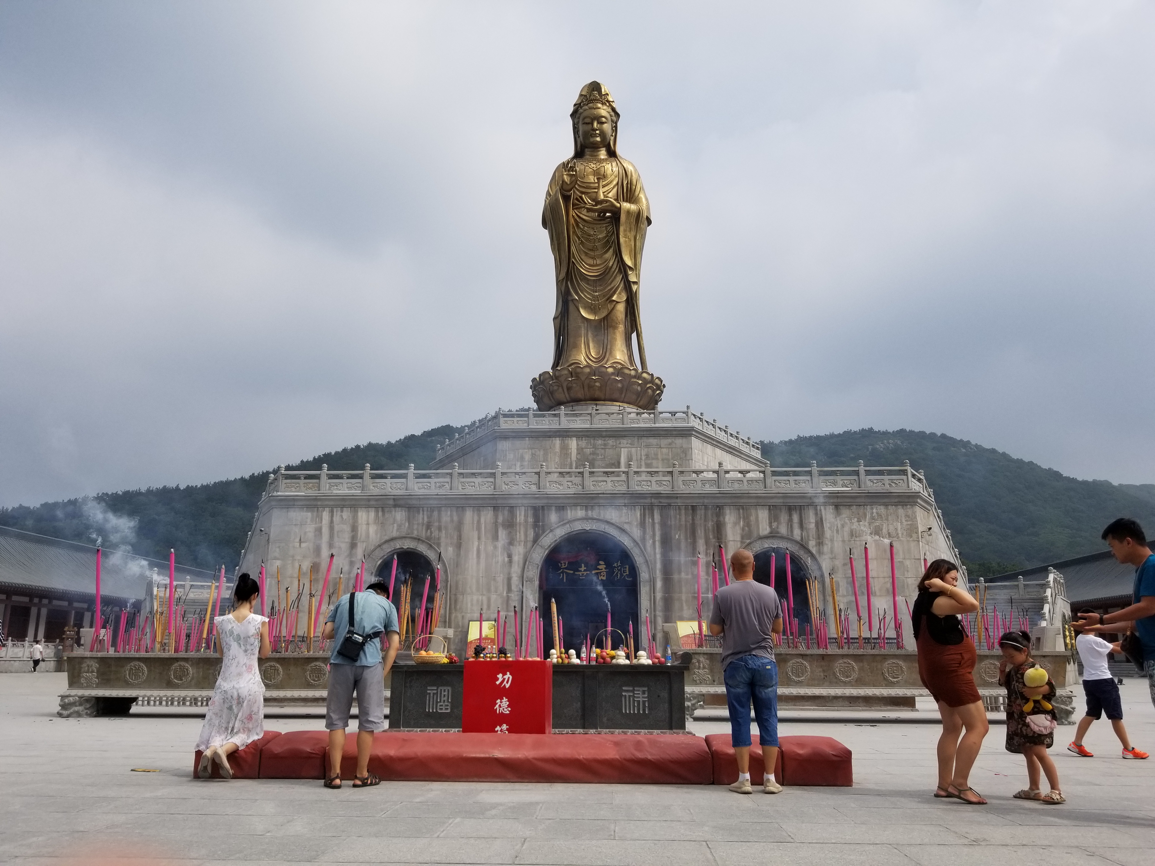 We visited the Buddhist temple near Dalian. Unlike the second temple we visited, the Temple of Heaven, this is both a park and an active Buddhist temple. This was heartbreaking in every way. We watched as people bought incense sticks to burn, performed their rituals, lit candles, gave offerings, and brought food. There were hundreds of Buddha statues, the largest over ten stories high.