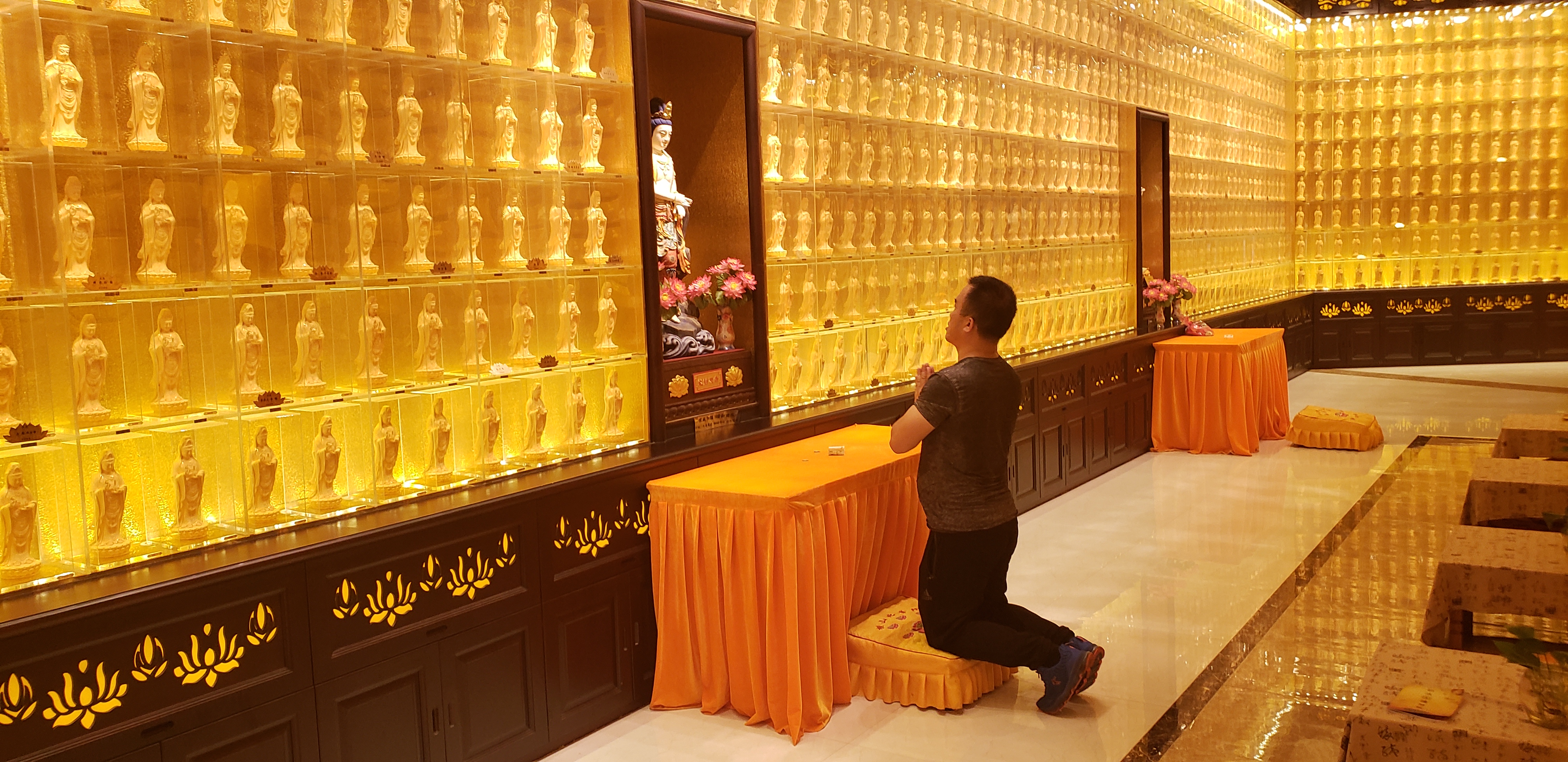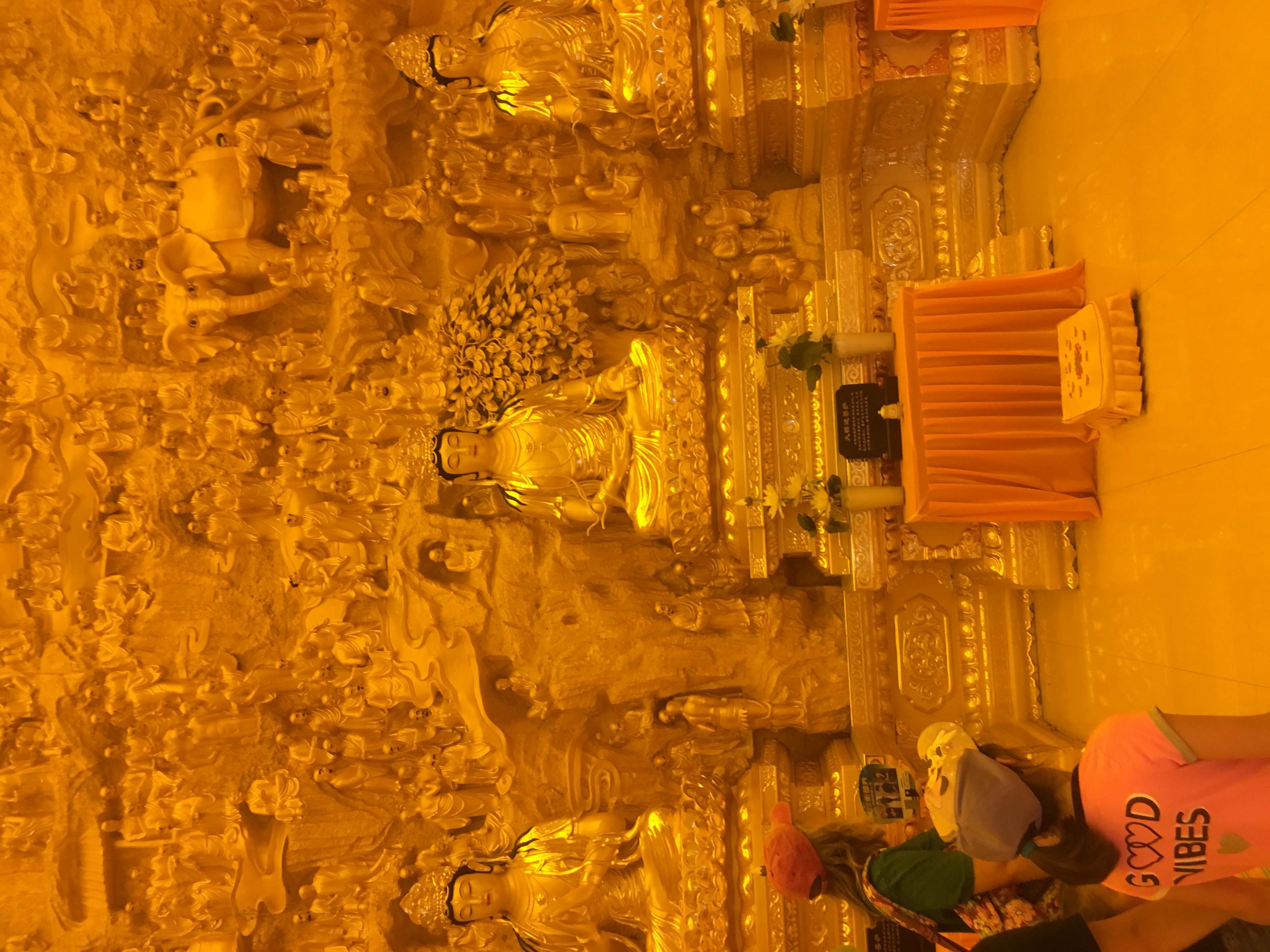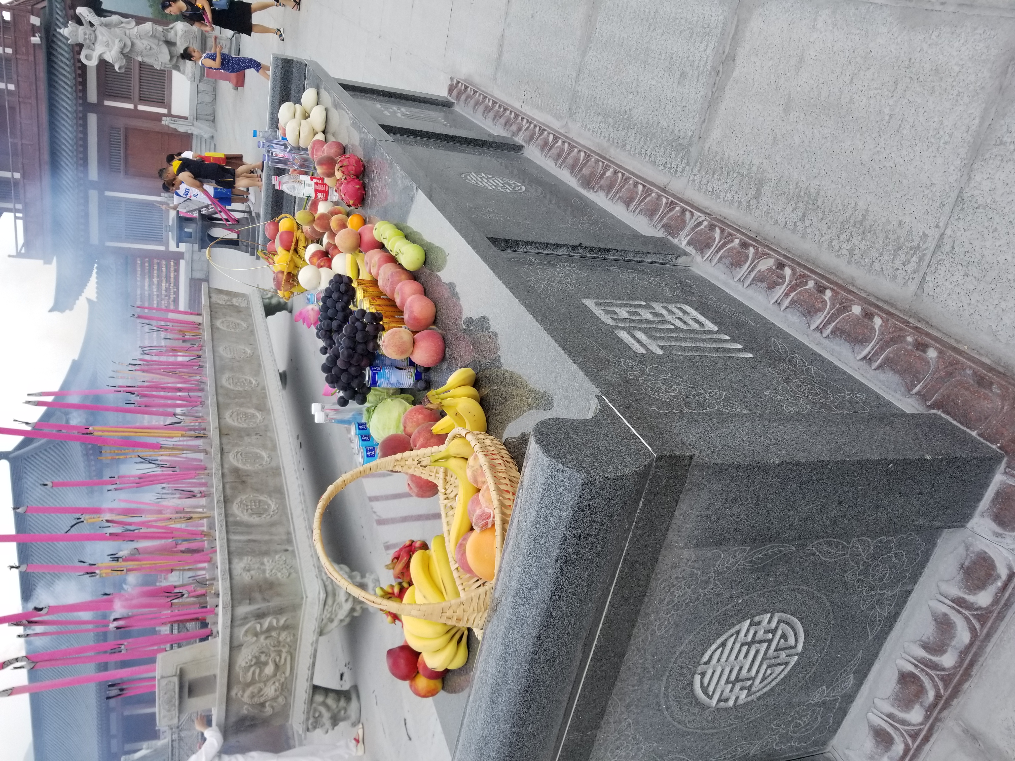 We visited the Buddhist temple near Dalian. Unlike the second temple we visited, the Temple of Heaven, this is both a park and an active Buddhist temple. This was heartbreaking in every way. We watched as people bought incense sticks to burn, performed their rituals, lit candles, gave offerings, and brought food. There were hundreds of Buddha statues, the largest over ten stories high.
